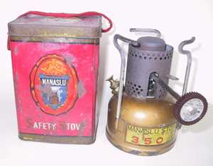 Manaslu350はPoebus625旧旧型を模して設計されたガソリンを燃料とするストーブである。まったくのコピー品ではなく、Poebusに対して次のような改良が施されている。@Poebusではポンプと燃料キャップが兼用であったがManasluでは燃料キャップが独立し、それに安全弁が付いている。APoebusではタンク上部の凹みを利用して余熱材を置くがManasluではタンクとは別の部品の予熱皿が付いている。