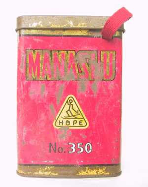 収納缶の上フタには飯塚運動具製造の英語表示社名が印刷されている。このモデルは現在は作られていない。製造していた期間もあまり長くなかったと思われる。