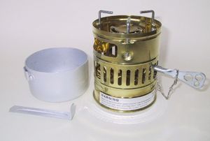 Svea123を引き継ぎ、ノズル掃除針を内蔵させたモデル。Svea時代から通算すると100年以上の歴史があるとのこと。現在も生産されている長寿モデル。Svea時代の製造図面の一部をそのまま踏襲したらしく、燃料タンクには現在でも「SVEA123」の刻印がある。加圧ポンプを省略した自己加圧タイプなので火力が安定するまでに少し時間を要する。 |