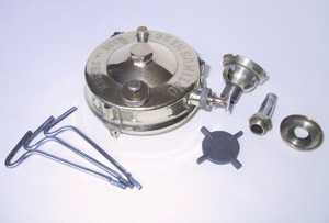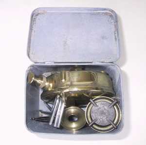 Primusの96Lとまったく同じ灯油ストーブとしては最小のモデル。収納缶が縦型なので分解したタンクを立てて入れる。