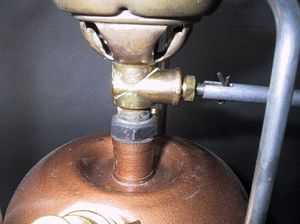 1960年代に製造された物である。タンクには幅の狭い黄色のネーム・シールが付いている。風防と火力調節ハンドルは初期型の物と同じタイプ。